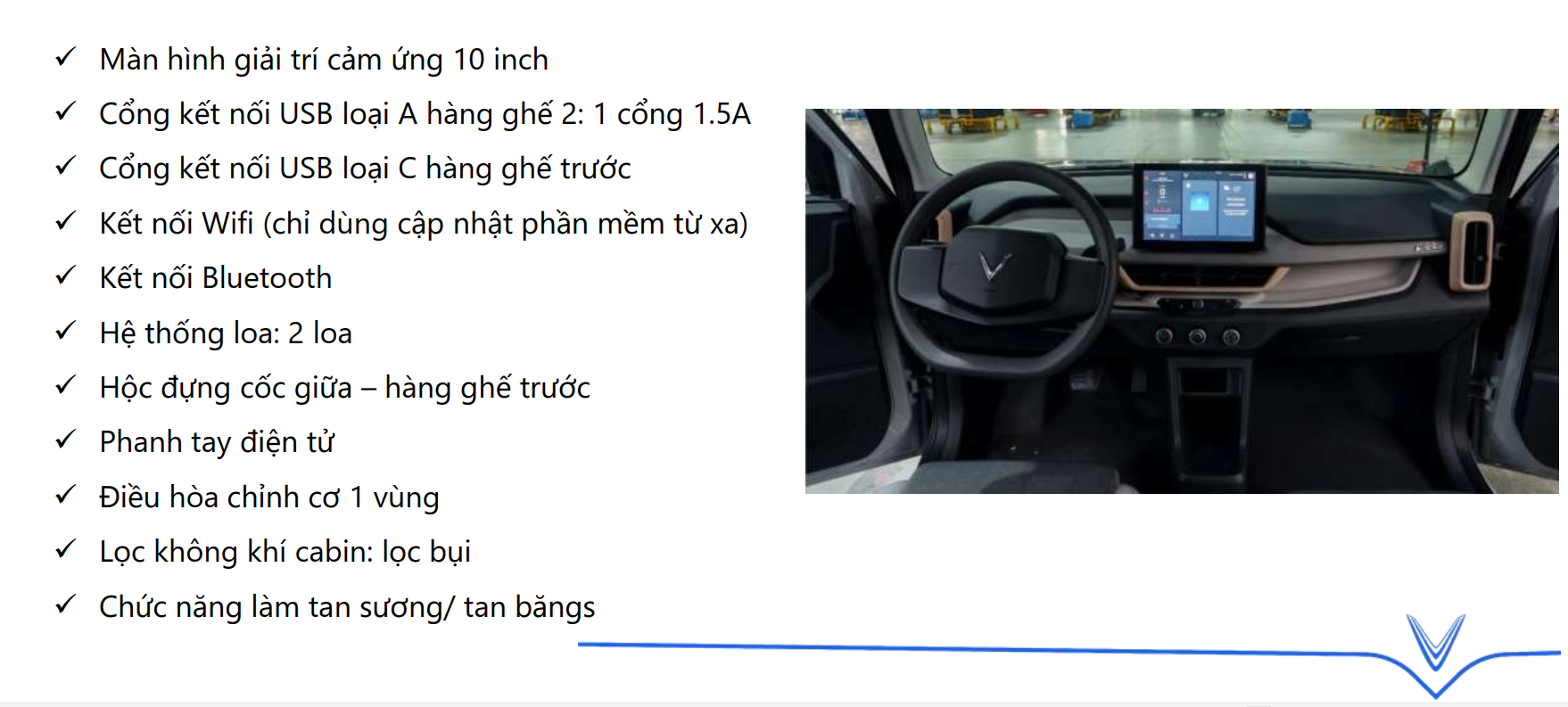 Thiết kế thông minh và không gian nội thất tối ưu hóa của VF 3 mang lại trải nghiệm di chuyển tiện lợi, đảm bảo sự thoải mái và tiện nghi cho cả 4 chỗ ngồi. Màu sắc nội thất trang nhã, trẻ trung và cá tính, cùng chất liệu thân thiện tạo ra một không gian đặc biệt, nơi chứa đựng những kỷ niệm đáng nhớ trên mọi hành trình khám phá phong cách sống của riêng bạn!